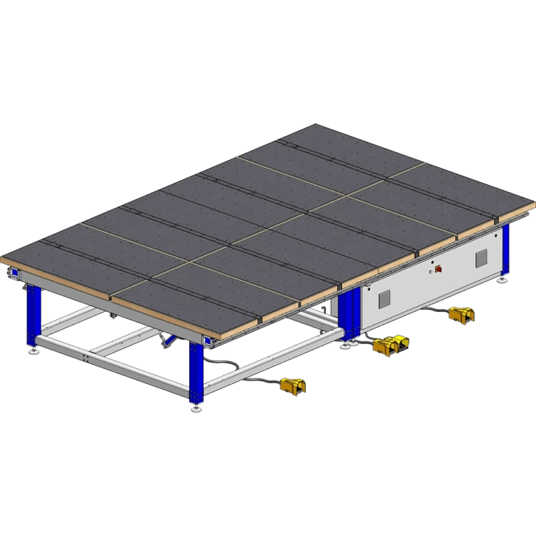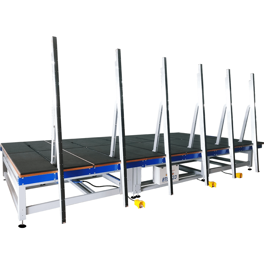 Para complementar y maximizar la eficiencia de sus mesas de corte CNC Vetromac, los Modelos BT (Breakout Tables) y BTA (Auto Glass Loaders) son soluciones esenciales que transforman su proceso de corte y manejo de vidrio. Estos equipos están diseñados para optimizar su flujo de trabajo, reducir la manipulación manual y aumentar la seguridad y la productividad.